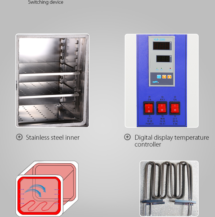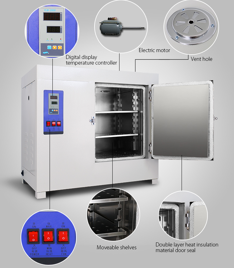 鼓風高溫干燥箱、不銹鋼內(nèi)膽、現(xiàn)貨的工作尺寸有:450*350*350mm、550*450*450mm 、 750*600*600mm、220V、功率分別為4、5、6KW、溫度50-500可調(diào)、數(shù)顯智能溫控器、超溫超時自動報警